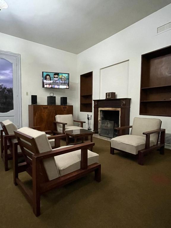 Desk, Sitting area, Fireplace, Sofa, Dining area